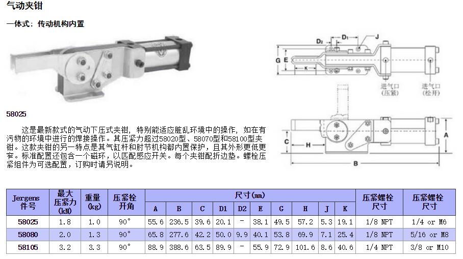 氣動夾鉗 一體式: 傳動機構(gòu)內(nèi)置