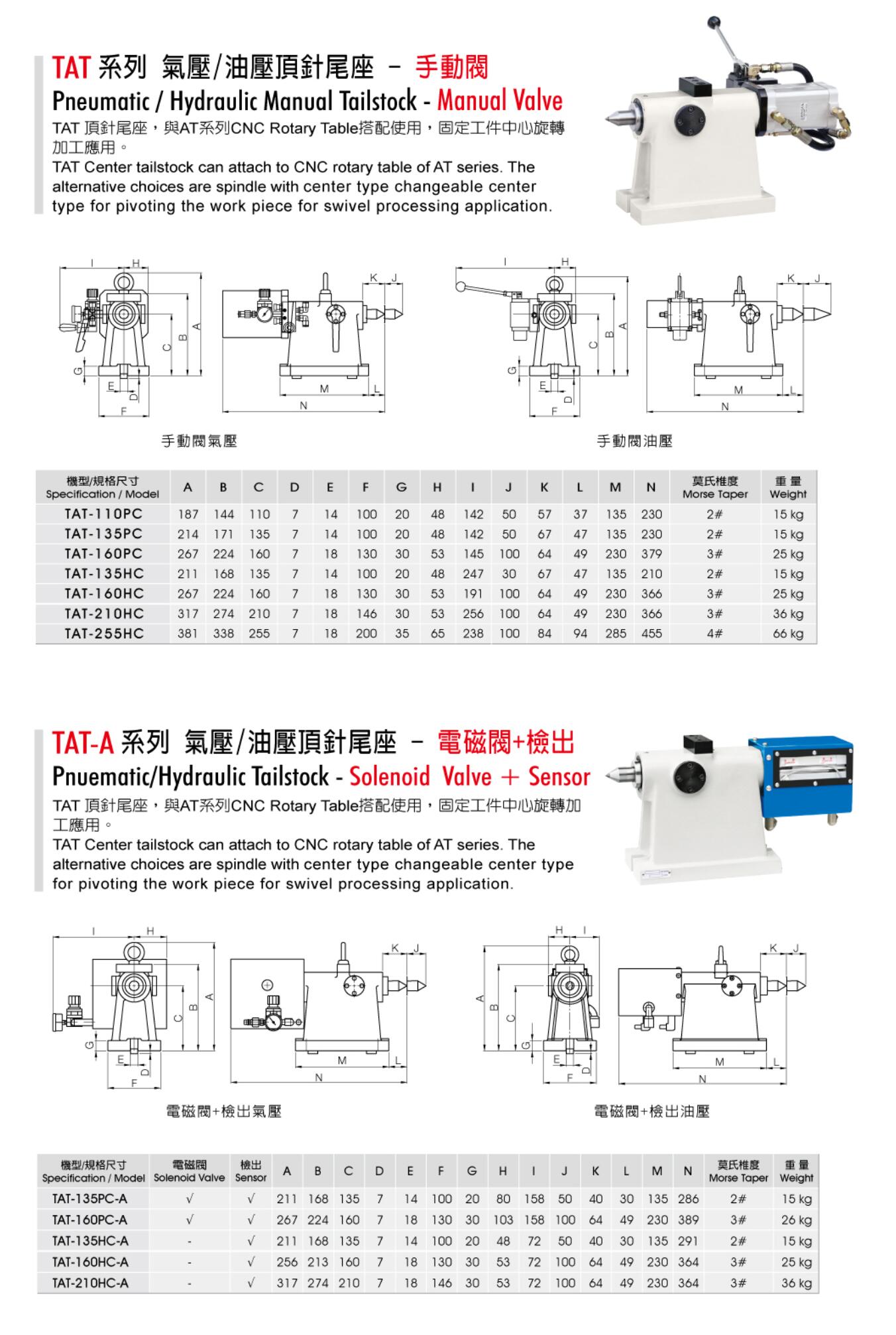 TAT氣壓/油壓頂針尾座系列