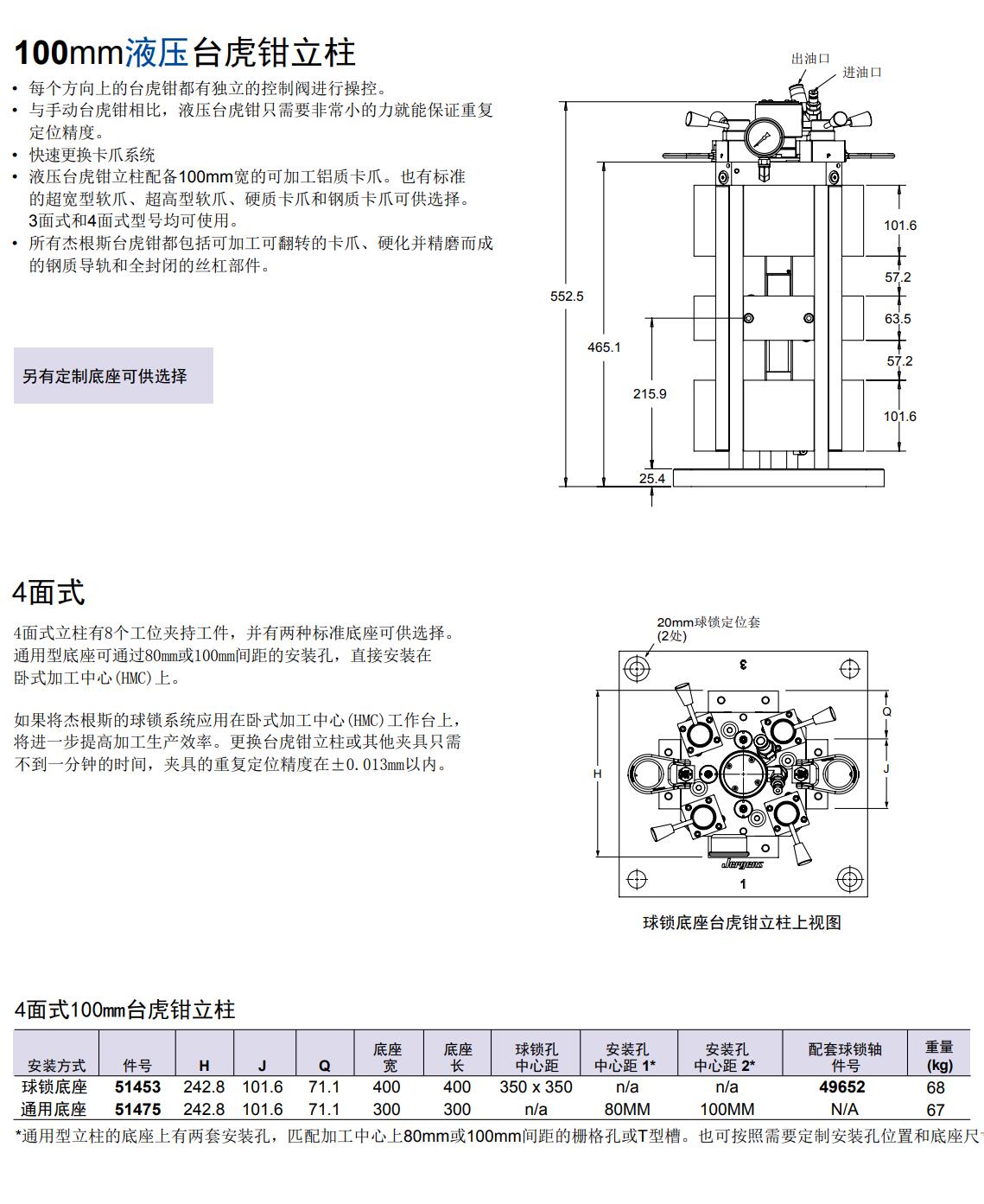 100mm液壓臺虎鉗立柱 4面式